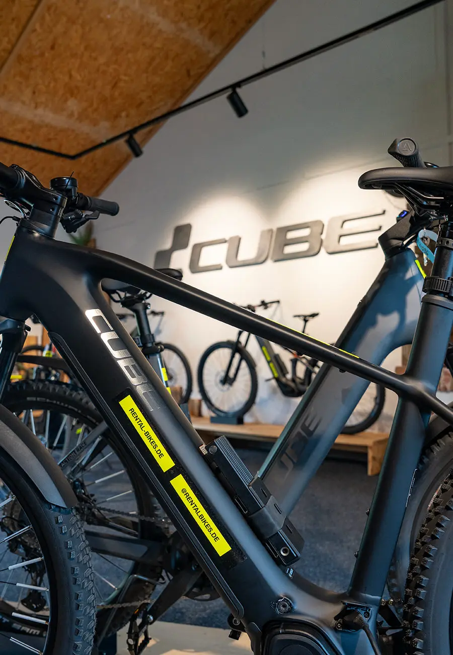 Einfach aufsatteln und losfahren: Mit unseren hochwertigen E-Bikes der Marke CUBE entdeckst du den Harz ganz entspannt. Starte direkt vom Resort aus in dein nächstes Abenteuer.